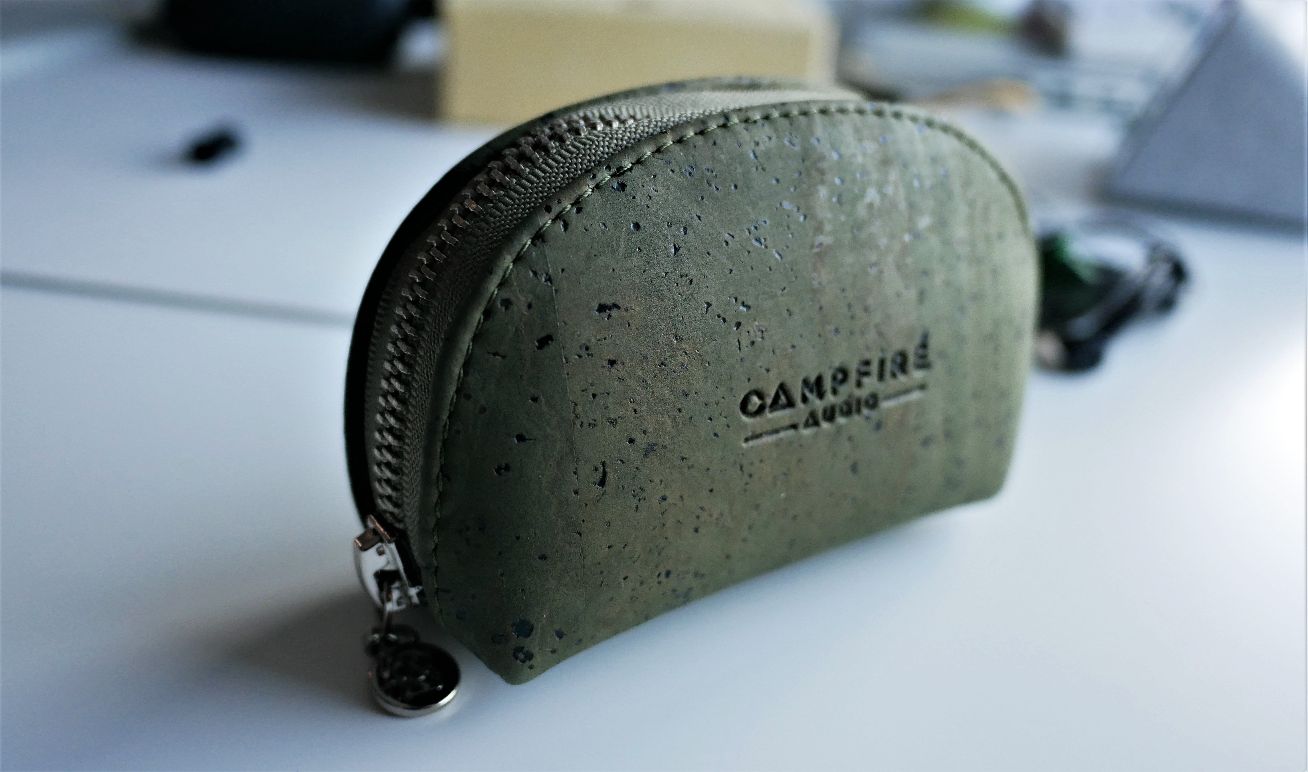 The packaging features the fancy outer paper covering and an inner box that is reminiscent of last year’s opening experience, which is an enjoyable one. The included case is made out of cork and has a greenish hue to it that looks unique and interesting. It has the purse-like look with zippered opening and soft inner padding. The package also comes with tips and several mesh protector pouches to store the IEMs individually in.
